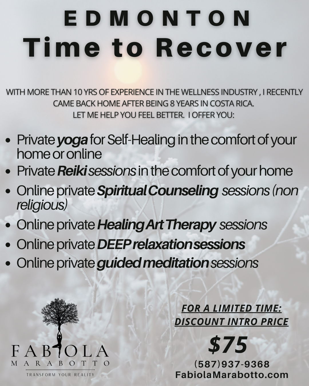 Through the incredibly powerful practice of Spiritual Counseling, Fabiola works to guide you past what is holding you back PERMANENTLY , and toward your true self, so that you can finally start living without fear and pain, and create a life you TRULY love.